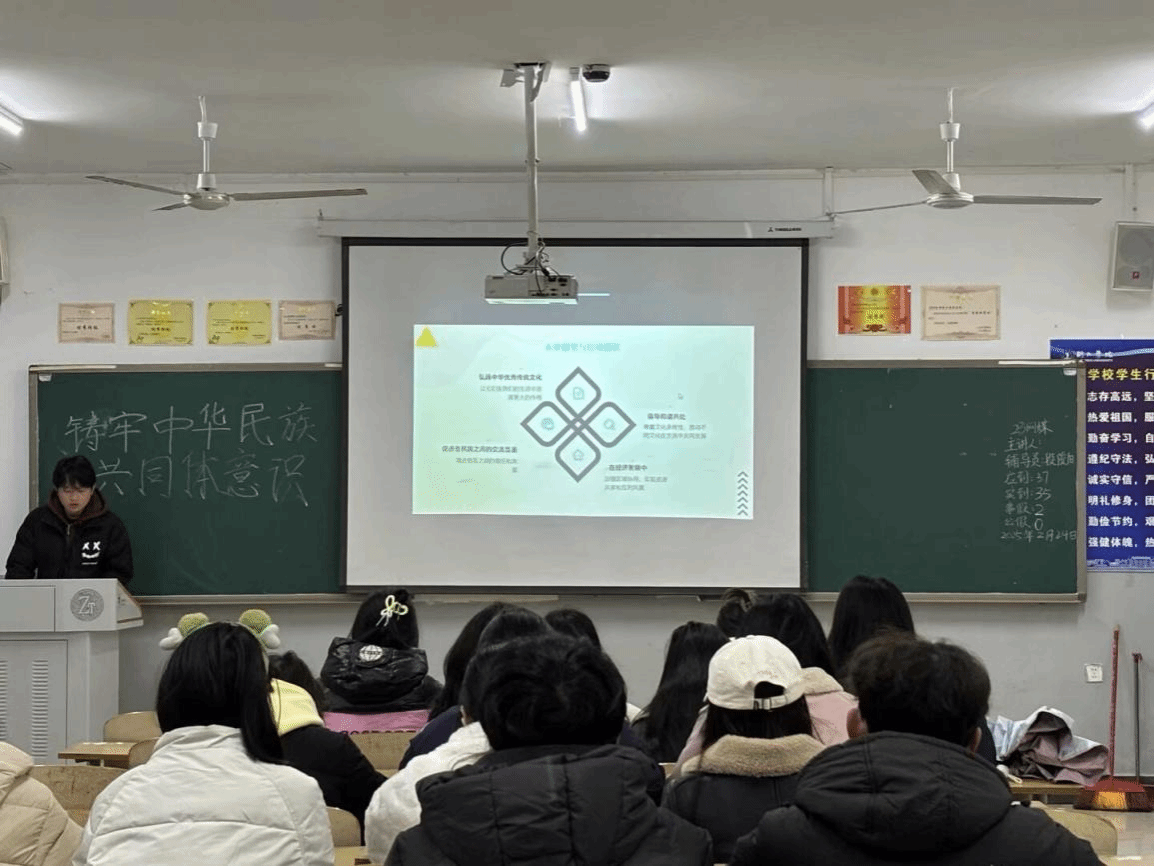 为深入贯彻落实党的民族政策,进一步增强同学们的爱国热情,2025年2月24日,我院开展了以“铸牢中华民族共同体意识”为主题的班会。