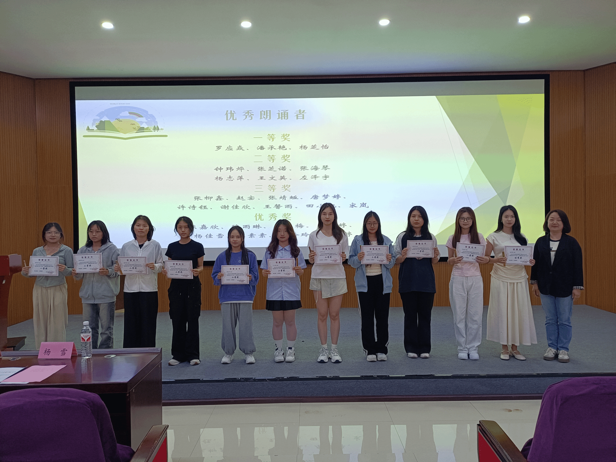 杨雪为“优秀朗诵者”颁奖
