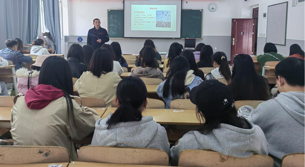 4月14日,人文学院副院长张建刚为2023届在校毕业作了就业讲座。