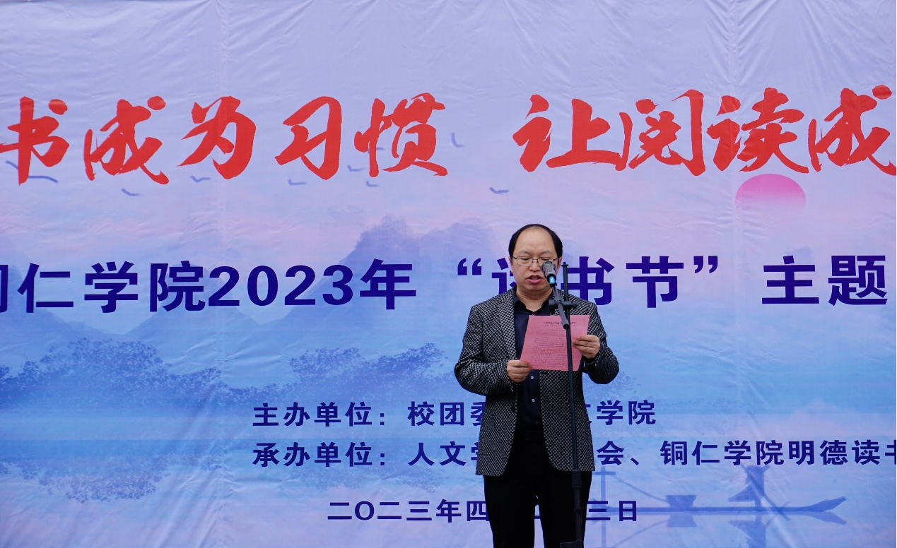 活动在人文学院朗诵队带来的诗朗诵《青春中国》中拉开了帷幕,张朝飞宣读了“读书节倡议书”人文学党委书记、院长孙向阳作了讲话。孙向阳说,书籍是精神世界的营养品,是智慧的钥匙,是最好的朋友大家要“书香”的浸润下,以淡然的心态面世,以从容的方式行走,让读书成为习惯,让阅读成就梦想随后,举行了人文学院2023年“阅读之星”获奖仪式和签名。