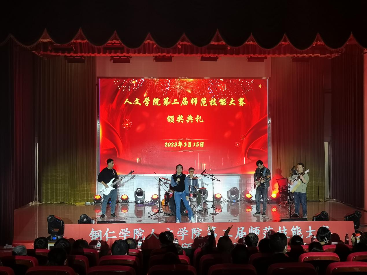 颁奖现场对各项获奖作品进行了展示,出席领导为获奖同学颁奖并合影留念。师生们还欣赏到了人文学院师生的歌唱、朗诵、舞蹈等表演,教学技能比赛一等奖获得者曹婷婷作了课堂教学现场展示。