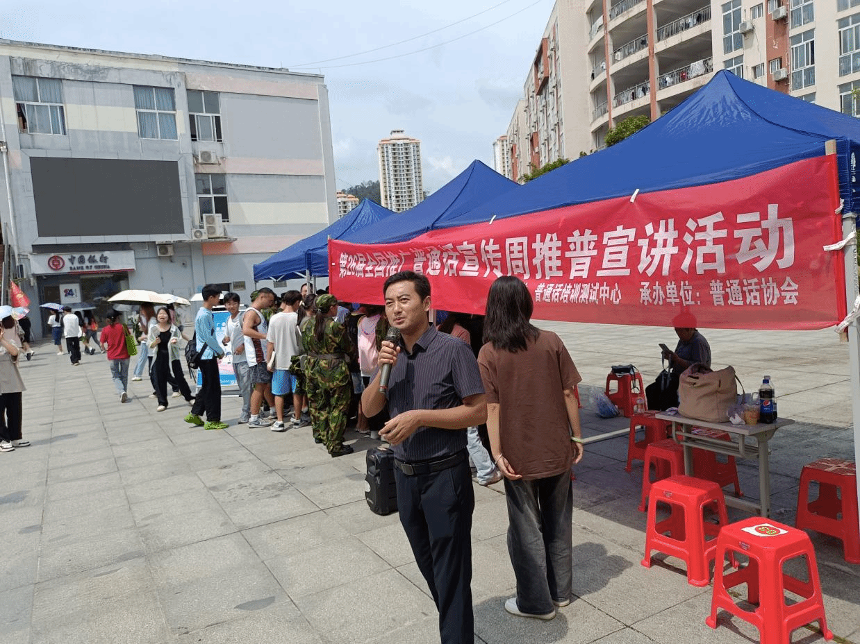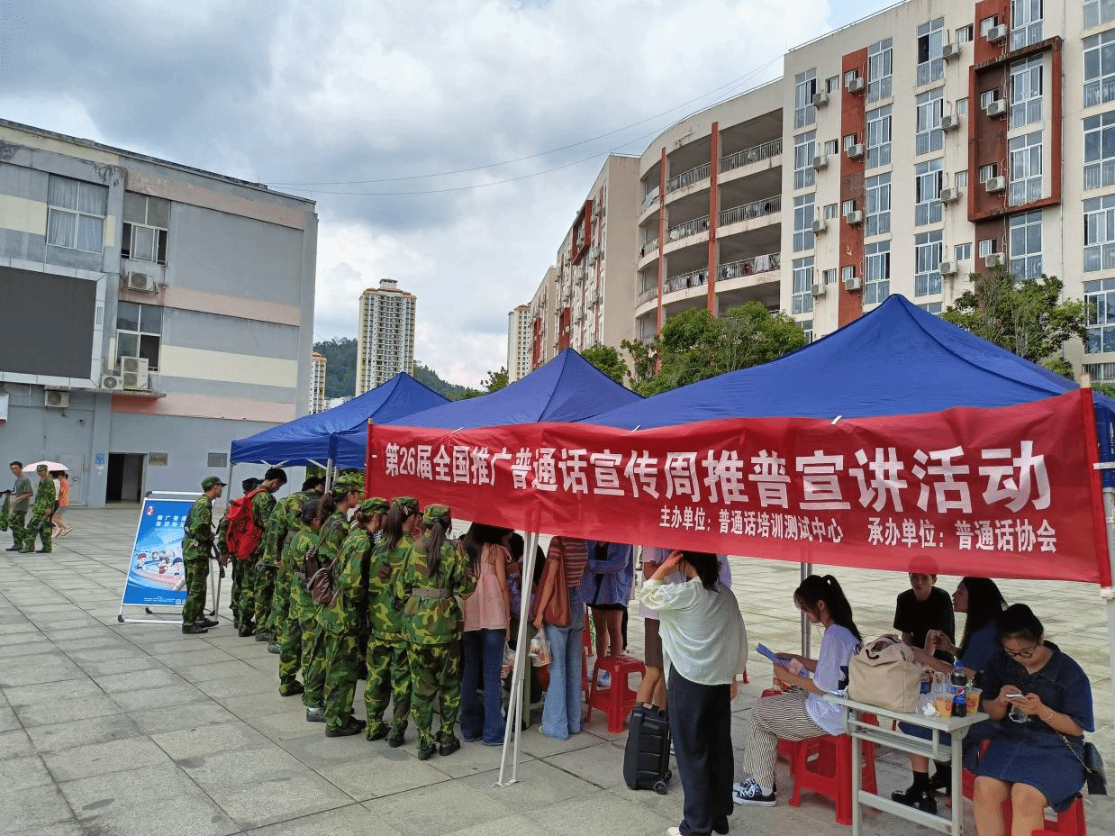 9月11日至17日是第26届全国推广普通话宣传周,为了促进普通话的宣传,引领世界杯官网形成推普强大合力,营造和谐文明的校园语言环境,推进在新时代、新征程上取得新发展、新成绩。9月11日,由普通话培训测试中心承办,普通话协会协办的,以“推广普通话,奋进新征程”为主题的推普周宣讲活动在丹桂食堂一楼举行。我院党委书记、院长孙向阳,党委副书记杨雪,副院长蒋小红出席活动。中文系、教务科、科研科、普通话培训测试中心相关老师与广大学生一起参加了宣讲活动。