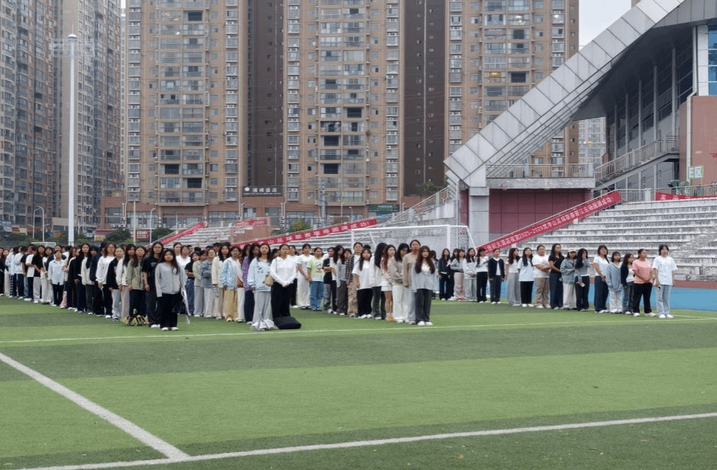 清晨七点整,全体师生已在校园田径场上整齐列队,静待庄严仪式的开启。仪式开始后,国旗护卫队迈着坚定有力的步伐,整齐划一地护送鲜艳的五星红旗入场。伴随着激昂的《义勇军进行曲》,升旗手挥臂扬起国旗,五星红旗在朝阳中缓缓升起。全体师生面向国旗行注目礼,高声合唱国歌,田径场上回荡着青春的爱国心声,场面肃穆而庄重。