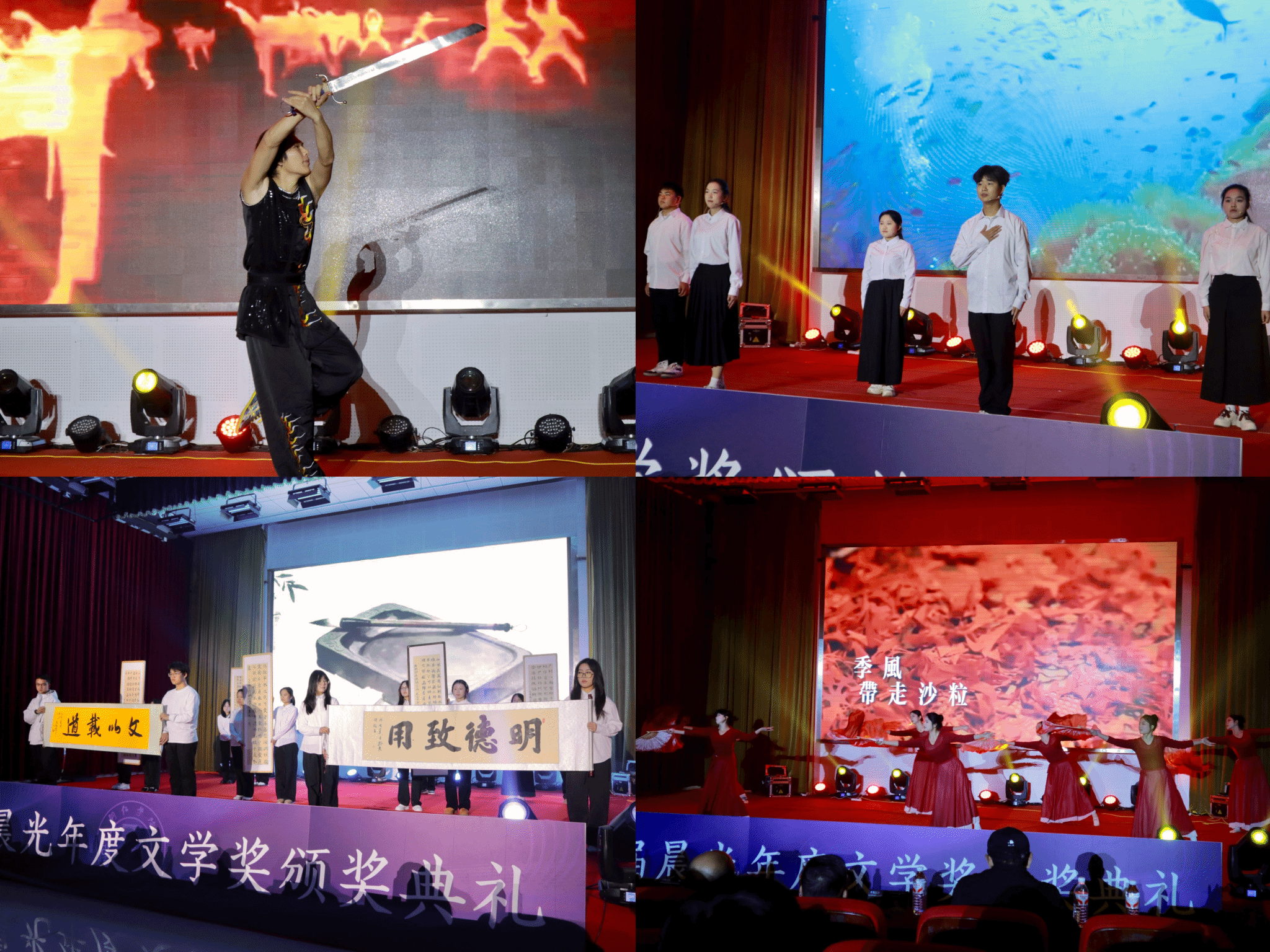 获奖学生代表龙青在发言中表示,文学是“日常的呼吸”,《晨光》期刊与文学社是一个“用真诚搭建的家园”。活动现场还演绎了融合武术与书法的节目《墨武同辉》,以及舞蹈《光亮》等,呼应“文字如光”的典礼主题。供稿:谢佳欣 摄影:石娅 张锴乾 一审:刘禹珉 二审:张建刚 三审:杨艳