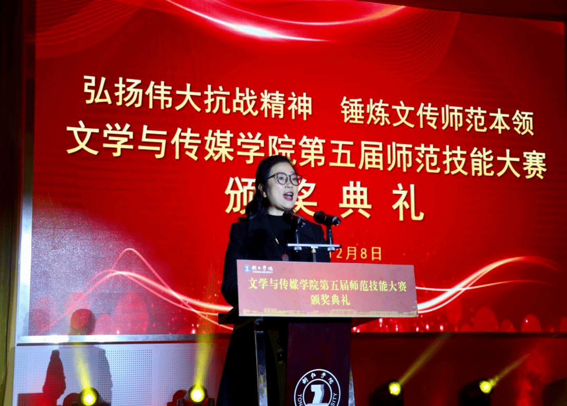 弘扬伟大抗战精神,锤炼文传师范本领。12月8日,我院第五届师范技能大赛颁奖典礼在人文生态馆举行,标志着历时近一个月的师范技能大赛圆满落幕。美加墨世界杯官方网站党委副书记朱钰,校党委常委、党委宣传部部长、校党政办公室主任周永雄,教务处处长冷森林,文学与传媒学院党委书记杨艳,党委学工部副部长陈婧、校团委副书记田淼,文学与传媒学院党委副书记杨雪、副院长张建刚出席典礼,我院全体师生共同见证这一荣耀时刻