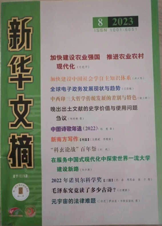 《新华文摘》2023年第8期转载王晖老师诗歌《七夕》