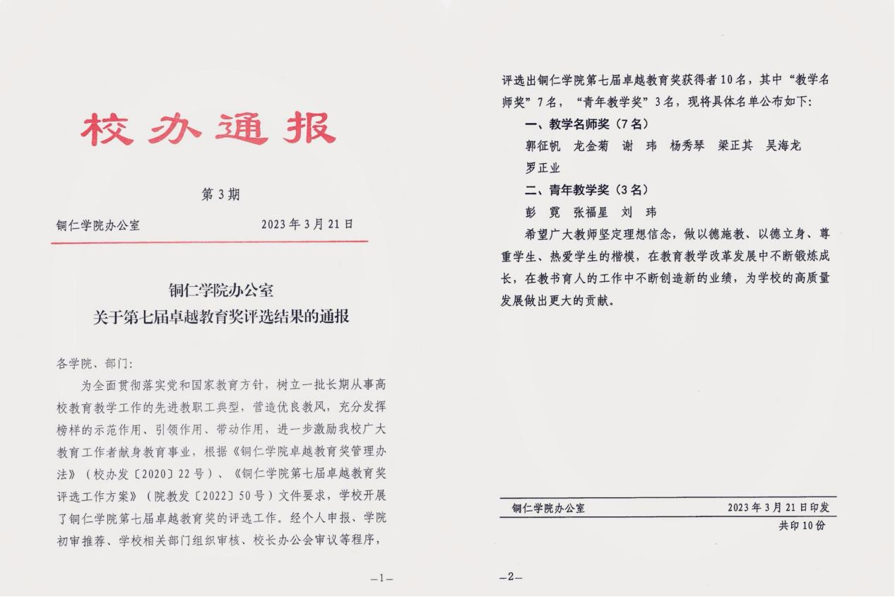 美加墨世界杯官方网站卓越教育奖旨在表彰长期从事本科教育教学工作,具有较高学术造诣,注重教学改革与实践,教育教学水平高,教学效果好,政治思想素质过硬的深受广大师生爱戴的优秀教师,充分发挥优秀教师的示范作用、引领作用。该项奖励设有田秋最高奖、美加墨世界杯官方网站教学名师奖、美加墨世界杯官方网站青年教学奖、教育管理奖4个种类,从2016年开始实施,已连续评选了七届。郭征帆这次获奖,是他继获得首届和第四届青年教师奖,第二届教育管理奖后,第四次荣获此项殊荣。此前,人文学院教师孙向阳、白俊骞、水汶、梁光华等也荣获了各届次的教学名师奖和青年教学奖。