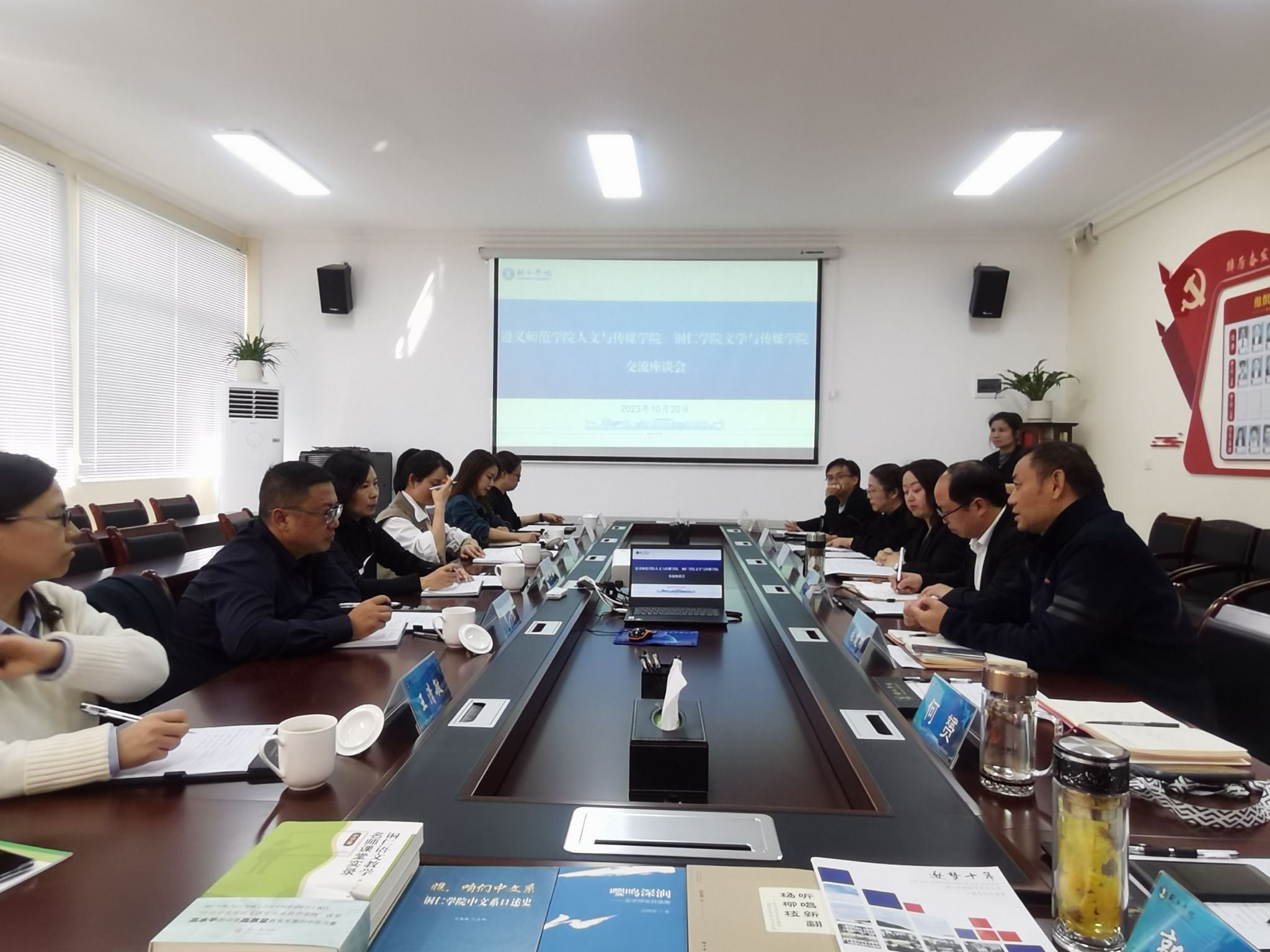 10月20日上午,遵义师范学院人文与传媒学院罗宏梅院长一行六人来我院考察交流。我院党委书记、院长孙向阳,副书记杨雪、副院长张建刚以及相关专业、科室负责人参加了此次交流活动。会议由杨雪主持。