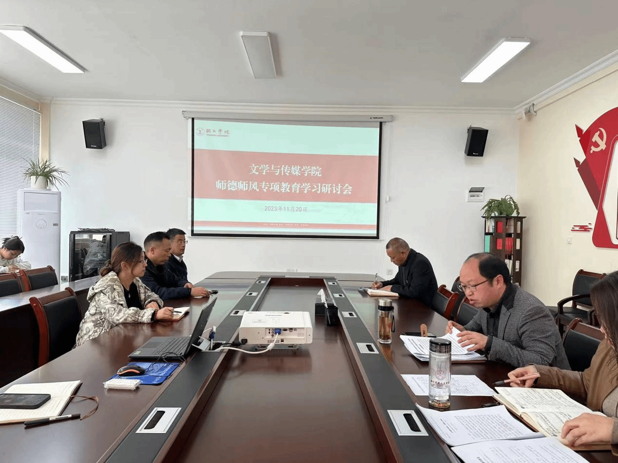 11月20日,文学与传媒学院在院会议室召开师德师风专项教育学习研讨会,会议由文学与传媒学院党委书记、院长孙向阳主持,全体教职工参会。