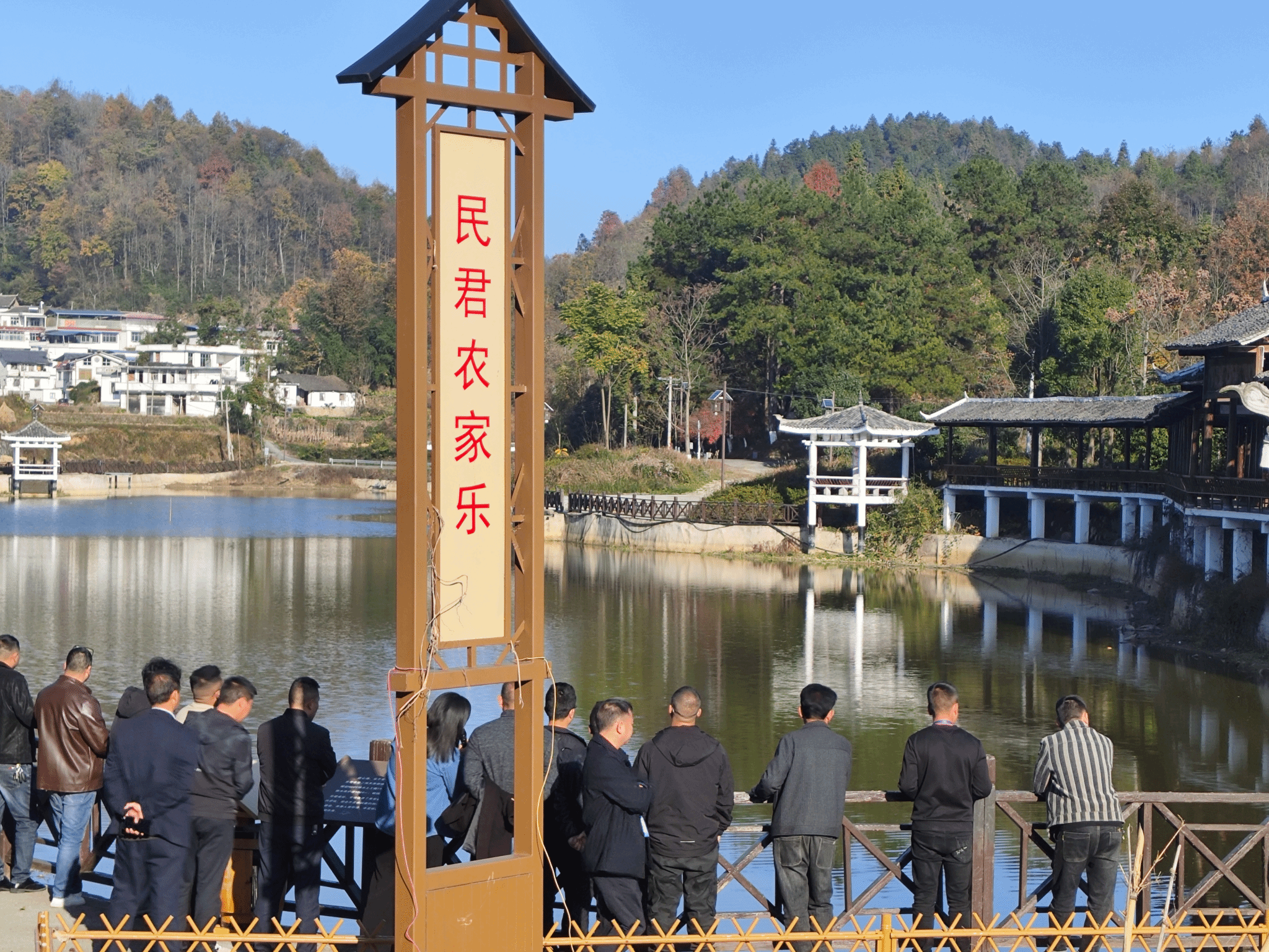 最后,大家来到位于万山区高楼坪乡青年湖村的黄家寨,学习黄家寨的优良治理理念。青年湖村黄家寨以“四在农家·和美乡村”建设为载体,抢抓“强村富民”三年行动机遇,借力“莞铜协作”,不断强化基础设施配套、优化特色产业链条、深化农旅融合内涵,充分发挥山水田园优势,推出农家乐、休闲垂钓等休闲避暑娱乐产品,将美丽乡村和生态旅游相结合,做活“山水”文章,做优“生态”文章,擦亮了“水墨黄家寨”乡村文旅名片,走出一条“党建强、产业兴、生态美、治理优、百姓富、乡风淳”的乡村振兴蝶变之路。大家通过参观学习,体验到必须结合自己乡村优势,打造属于自己的乡村旅游品牌.