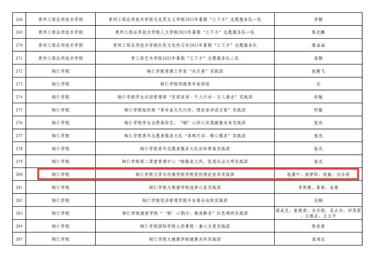 2023年贵州省“三下乡”社会实践优秀团队公示名单↑