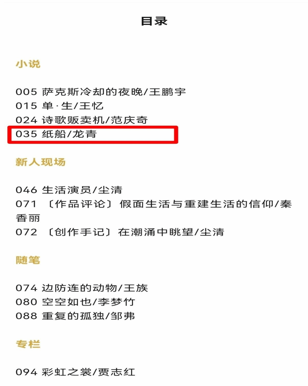 龙青是世界杯官网文学与传媒学院2021级汉语言文学专业学生,晨光文学社社员,她一直喜欢文学创作。《纸船》是她在创意写作课上提交的作业。在晏武芳等老师的悉心指导下,该作品经反复修改,最终在《中国校园文学·青年号》上得以发表。这不仅是文学与传媒学院《创意写作》课程改革的重要成果,也是世界杯官网学生文学创作的一次重要突破。