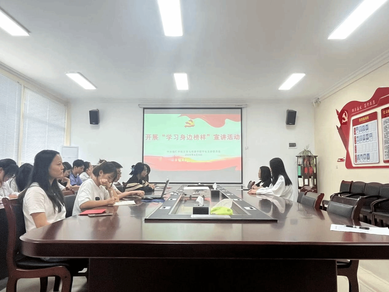 为深入学习贯彻习近平新时代中国特色社会主义思想,积极发挥新时代榜样人物的引领作用,文学与传媒学院学生党支部于6月6日在学院会议室开展了“弘扬正能量,树立学习榜样”先进模范人物宣讲会。此次活动旨在通过分享优秀党员的事迹,激励广大党员向榜样看齐,共同营造积极向上的学习氛围。会议由学生党支部负责人杜小霞主持。