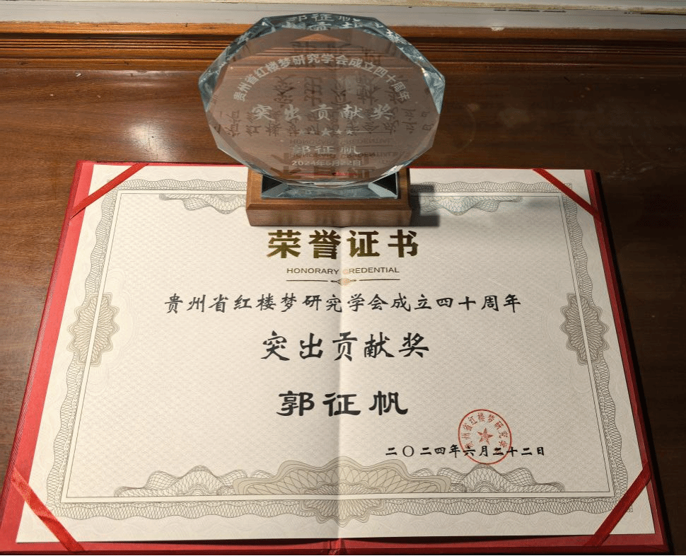 在省红学会成立40周年庆典上,郭征帆荣获了贵州省红楼梦研究学会成立四十周年“突出贡献奖”。