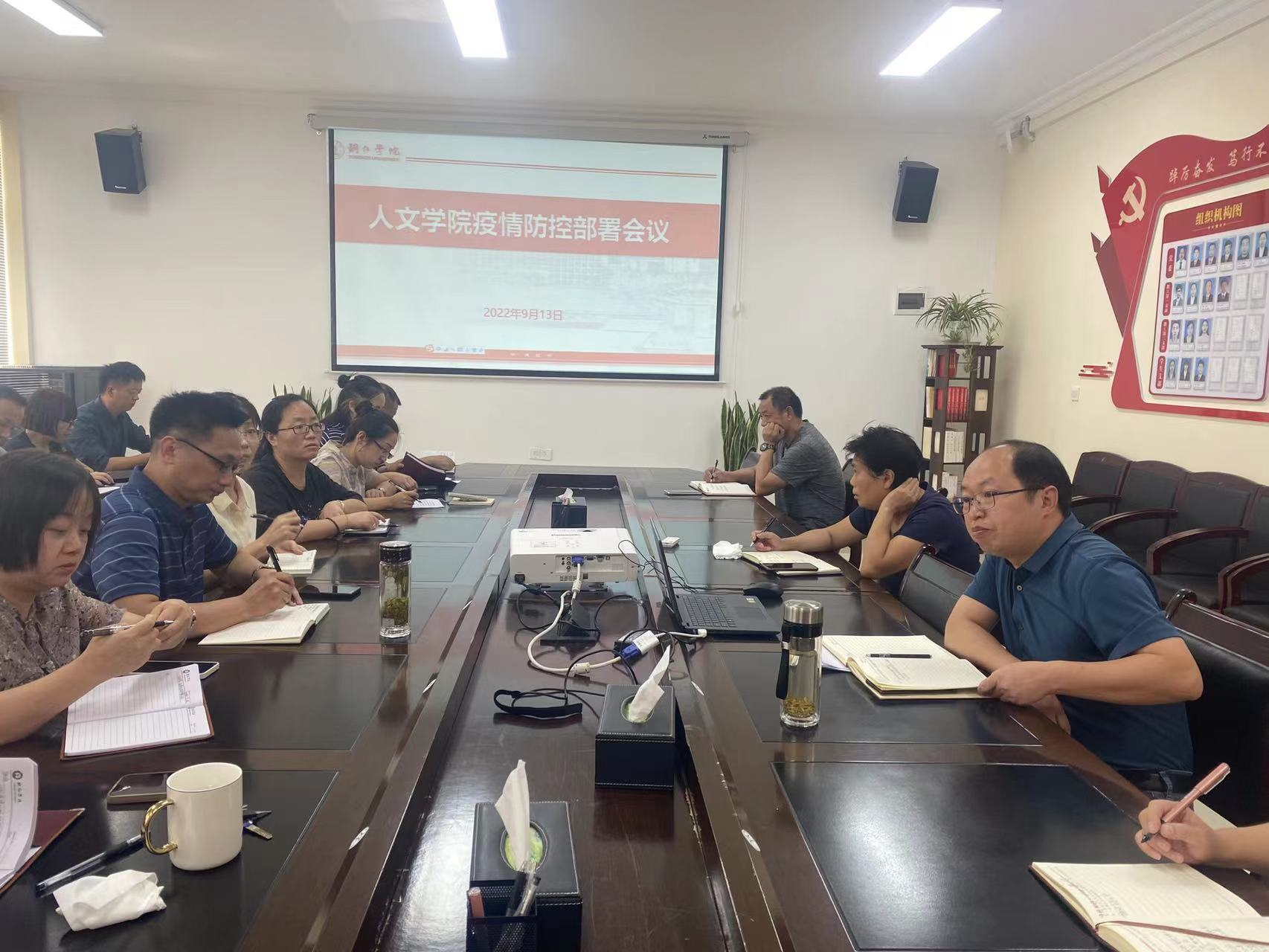 2022年9月13日,人文学院在院会议室召开疫情防控工作部署会议,学院领导班子、辅导员和班主任、行政人员参加了会议。会议由人文学院党委书记、院长孙向阳主持。