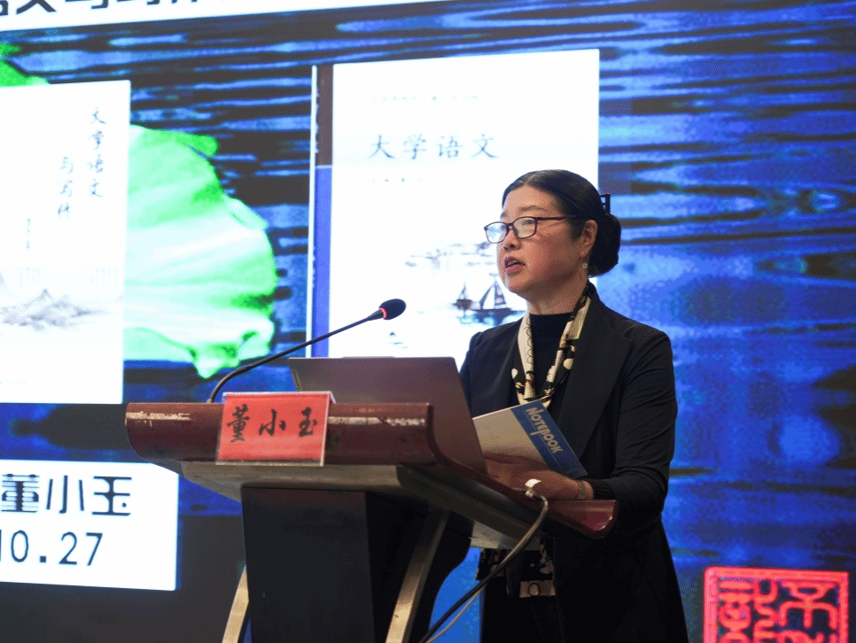 西南大学新闻传媒学院二级教授、教育部新闻传播学类专业教学指导委员会委员董小玉在《大学语文教材编写的理念·价值·框架·特色——以<大学语文与写作>编写为例》的报告中提出:第一,教材编写理念要彰显教育的工具性,注重语言运用和文化弘扬,凸显大学教育的人文性,紧密联系社会并提供丰富的教学资源。第二,要明确教材编写的价值,培养学生成为深刻的阅读者、敏锐的评论人、博雅的文化人。第三,要注重教材编写的框架结构,凸显教材编写特色,坚持文学鉴赏与写作训练双向组合;传统与现代、理论与实践、实用与审美三项结合;生活性、人性、诗意性三性结合,实现大学生阅读能力与写作能力的有效提升。