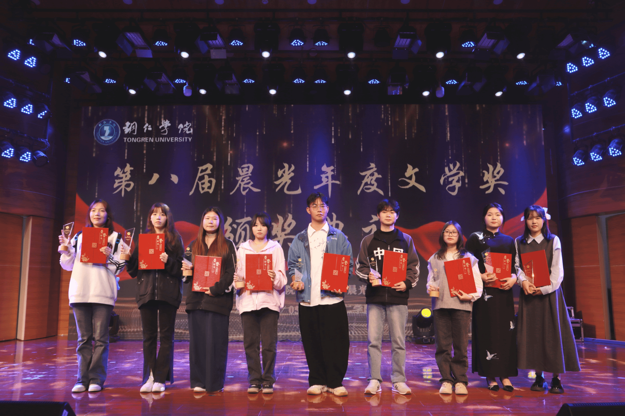 胡艳艳的《炊烟(外四首)》、伍奕的《望谟笔记》与毛明壮的《明天,可否用誓言留住你》荣获优秀诗歌奖;陈霜霜的散文《远山之外》荣获优秀散文奖;任莎莎的小说《热搜》与梁憬桐的小说《待到山花烂漫时》荣获优秀小说奖。石维、龚静、张钱、梁光华、陈丹玲、龙凤碧分别为获奖同学颁发荣誉证书和奖杯。晨光文学社和汉服社的同学们表演了《夜空中最亮的星》《汉韵华裳·中文之美》《暗飞声》等文艺节目。