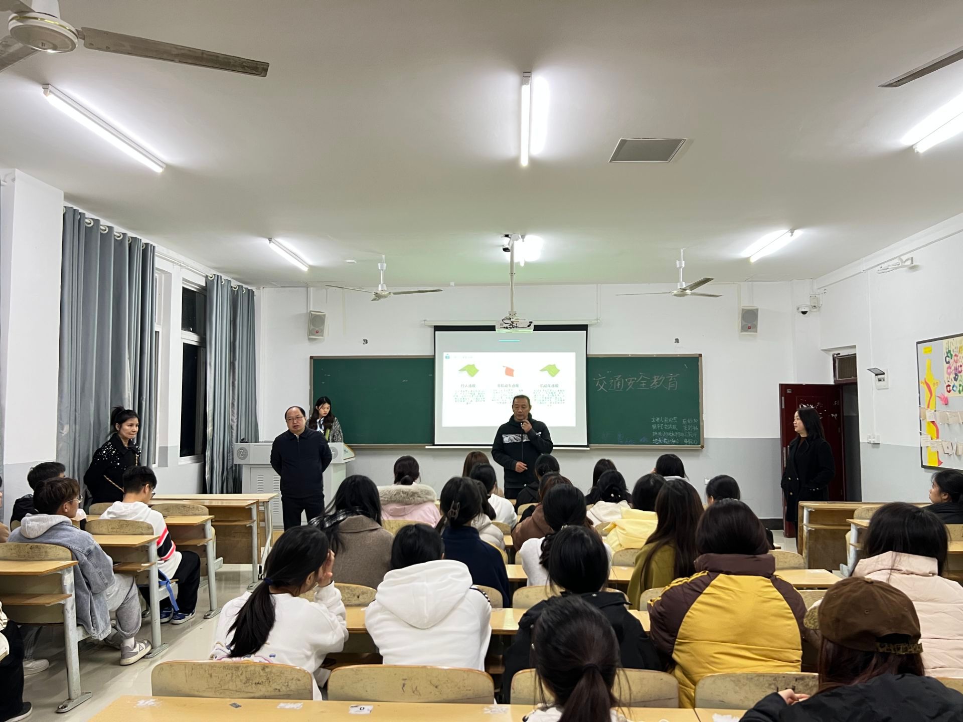 (院领导进班级宣讲安全知识)