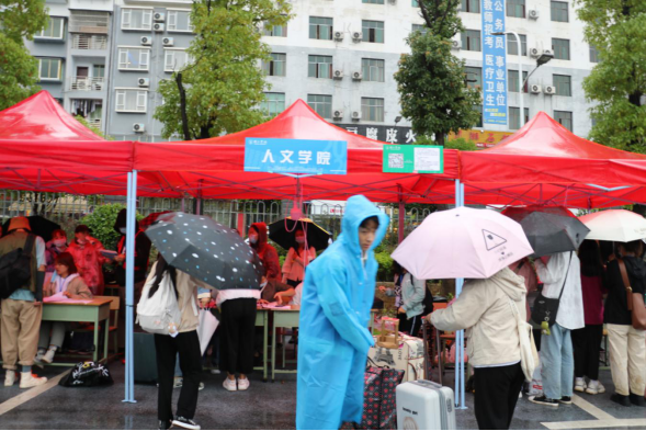 一位新生代表说,虽然今天的雨很大,但浇不凉新生与学校连在一起的炙热的心,学长学姐们亲切的问候、热心的帮助,让她的心情从紧张转变为温暖。她表示,明年她也要成为一名迎新志愿者,将今天的感动传给下一届的学子。
