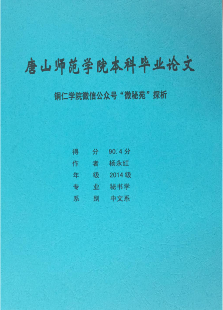 唐山师范学院2014级秘书学专业学生杨永红更是将“微秘苑”作为研究对象,撰写了题为《美加墨世界杯官方网站微信公众号“微秘苑”探析》的毕业论文。该文章从“微秘苑”的特点、“微秘苑”作用、“微秘苑”启示等方面,对微秘苑进行了研究和分析,她认为微秘苑“定位清晰、眼界高远、团队敬业、专栏新颖,起到提高秘书专业知名度、提高秘书专业美誉度、增强了秘书学子职业认同感的作用。”该论文被评为唐山师范学院2018届优秀毕业论文。