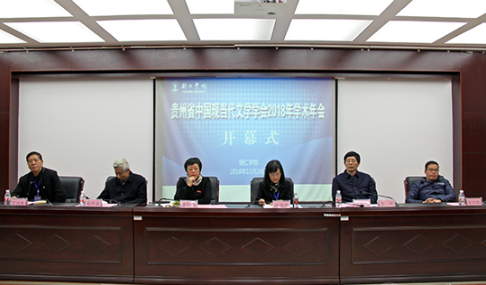 2018年11月24日,由贵州省中国现当代文学学会主办,我院及田秋写作学院共同承办的贵州省现当代文学学会在世界杯官网顺利召开。副校长罗红芳、贵州省中国现当代文学学会会长谢廷秋、贵州首位鲁迅文学奖获得者肖江虹等领导专家出席开幕式并在主席台就坐。会议吸引了全省各高校教师、在读研究生以及铜仁作家安元奎、王晓旭、侯乃铭等70余人参会。会议由田秋写作学院副院长孙向阳主持。