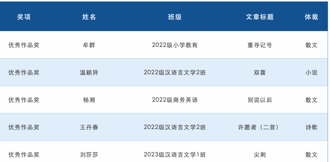 获奖名单