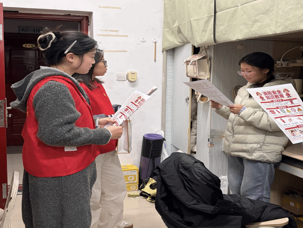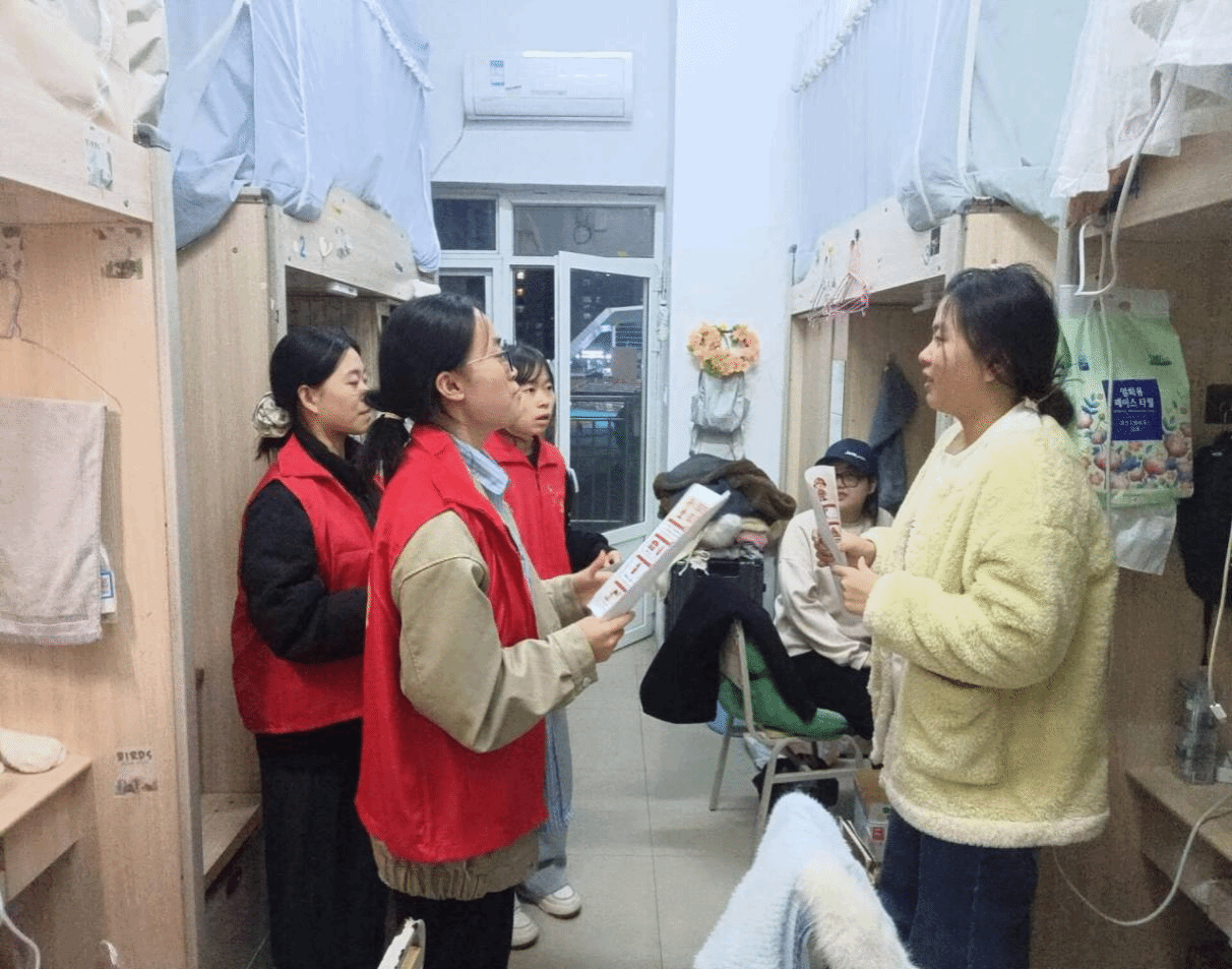 活动中,学生党员分组进入学生寝室,聚焦校园安全热点,结合高校电信诈骗典型案例,拆解刷单返利、冒充客服等常见骗局,发放宣传资料并强调“不轻信、不转账、不透露”反诈准则。同时,结合冬季宿舍用电特点,重点宣讲了安全用电的重要性,提醒同学们注意插座负荷、不能使用违规电器,做到人走断电、杜绝安全隐患,共同维护安全、稳定、和谐的寝室环境。
