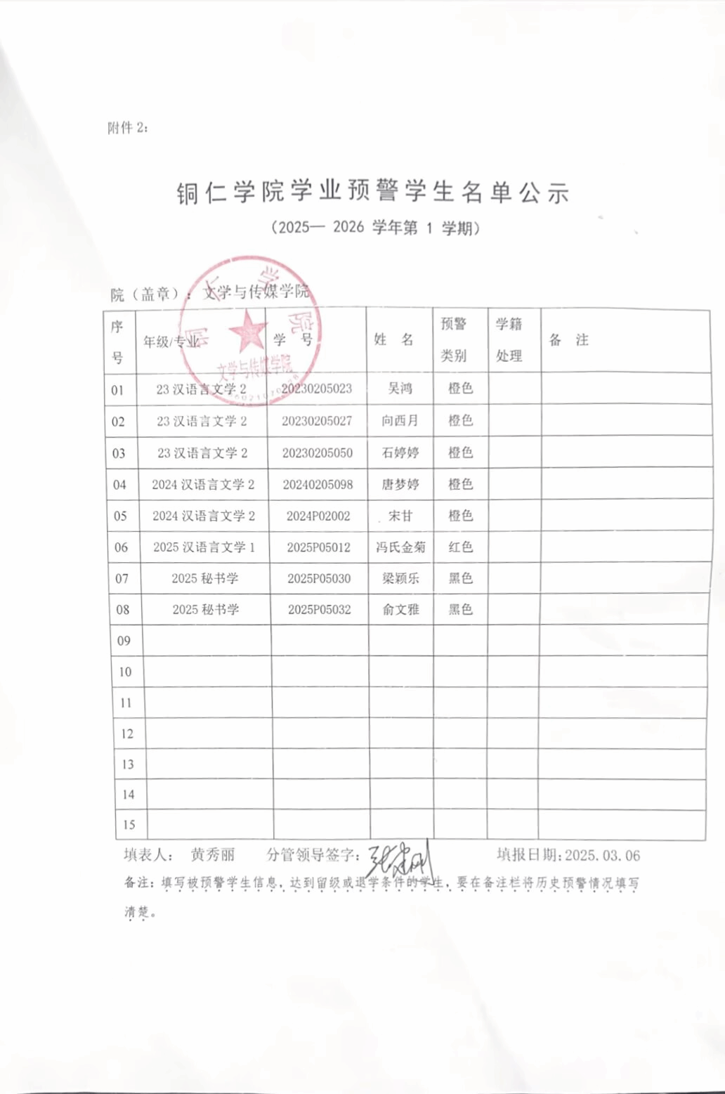 美加墨世界杯官方网站2025—2026学年第1学期学业预警名单公示