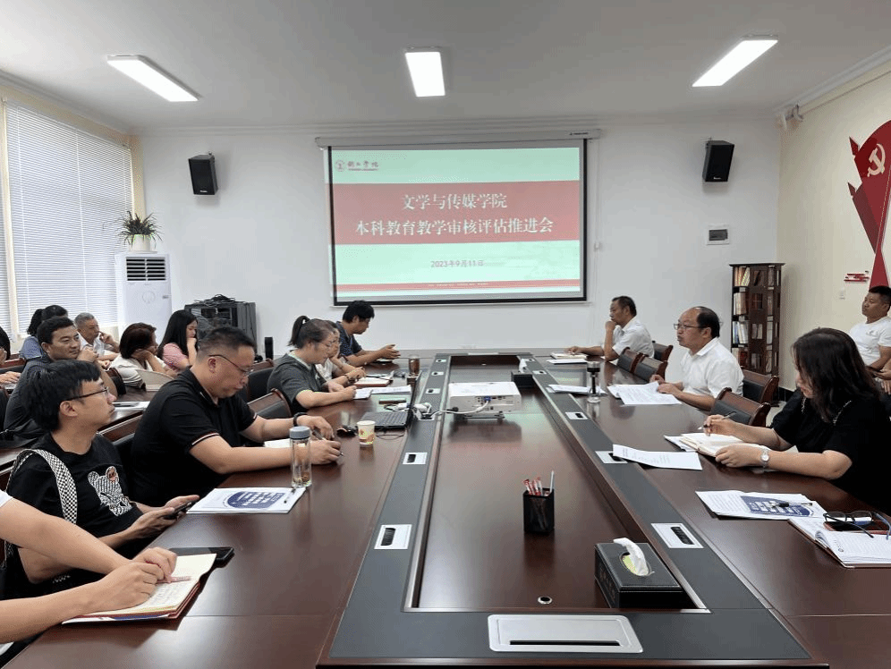 文学与传媒学院审核评估工作领导小组全体成员、各专业教师、各职能科室负责人参加了推进会。