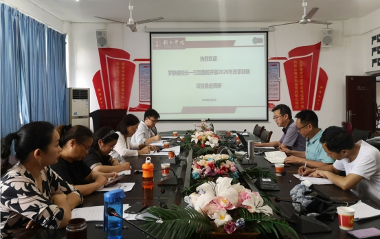 2020年7月7日下午,罗静副校长深入教育学院开展“‘引水灌田’模式最后一公里路径开发——基于‘七性’课堂的实用性建设需求”改革创新项目调研工作。教育学院刘德平书记、王华刚副院长、社会服务科科长、教务科科长、各系系主任、教研室主任及社会服务中心杨忠华参加了本次调研会。会议由王华刚副院长主持。
