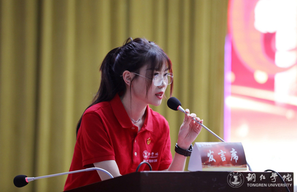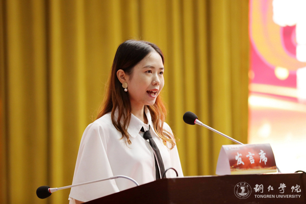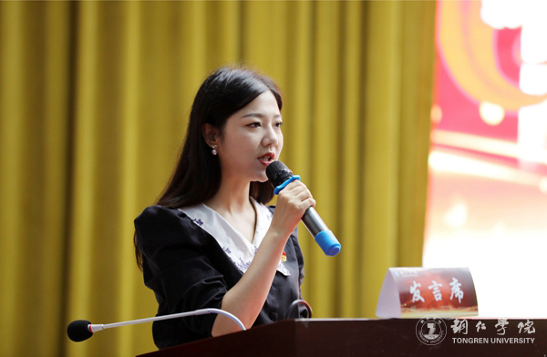 志愿者代表杨秀奇同学发言
