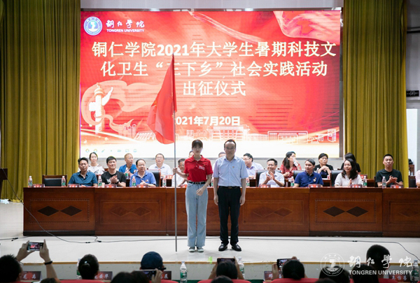 为深入学习宣传贯彻习近平新时代中国特色社会主义思想、习近平总书记“七一”重要讲话精神和视察贵州重要讲话精神,贯彻落实习近平总书记关于青年工作的重要思想,结合世界杯官网党史学习教育“百名教授博士助力乡村振兴下基层”行动,引导和帮助广大青年学生上好理论与实践相结合的“大思政课”,7月20日,世界杯官网在梵净山人文生态馆举行了2021年大学生暑期科技文化卫生“三下乡”社会实践活动出征仪式。校党委副书记代亮出席仪式并讲话。校党委委员、宣传部部长叶丹、统战部部长刘德平出席仪式。相关职能部门主要负责人,各二级学院党委书记、分管学生工作副书记、团总支书记、指导老师、大学生志愿者等师生代表共300余人参加仪式。仪式由团委副书记田自立主持。