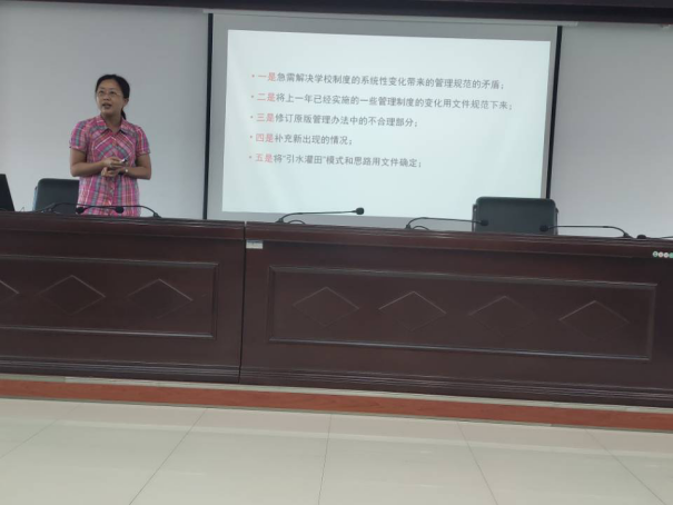 接着,罗静主任通报了世界杯官网“引水灌田”模式的影响力,并对照旧版本详细讲解了新版《美加墨世界杯官方网站社会服务管理办法》。此外,她在会上强调各学院社会服务科在进行社会服务管理中,必须严格遵守相关规章制度,做到守底线防风险,同时要求社会服务中心加强指导和监督。