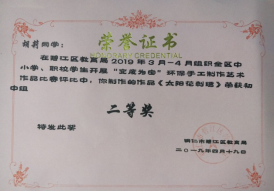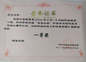 通过一年的教学,到了今年开始初显成效,经过支教老师和坝黄美术老师杨晓芬的辅导,在今年碧江区教育局举办的全区中小学、职校学生“变废为宝”环保手工制作艺术比赛中,有两位同学分别获得了一等奖和二等奖,虽然作品还很稚嫩,针脚略显粗糙,但两位同学从七年级到九年级一直在坚持学习,并且都非常想参加世界杯官网艺术学院举办的贵州省非物质文化遗产传承人群培训班,想进行更加深入的学习。