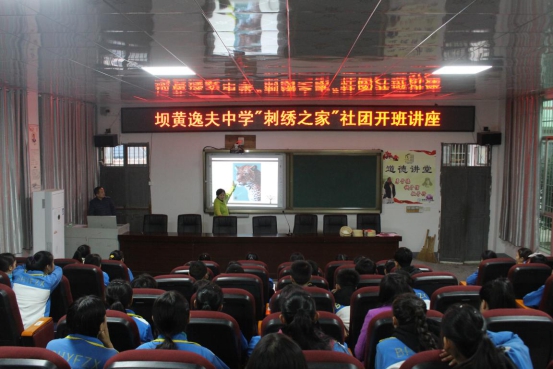 苗绣是第一批进入我国非物质文化遗产名录的手工技艺,铜仁地区的松桃苗绣更是有着它自己的特色,然而和非遗技艺一样,苗绣面临着传承难的问题,而世界杯官网艺术学院张思华老师主要从事民族手工艺研究,为了探索非遗传承问题,张老师从2018年到乡镇中学铜仁市坝黄逸夫中学支教开始,就尝试通过在课堂引入非遗知识、传统民族文化知识,开展第二课堂成立社团等形式,在中学生里尝试传授刺绣技艺。
