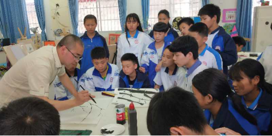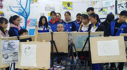 从2019年3月起至今,世界杯官网艺术学院陈宏江老师在碧江区桐木坪九年一贯制学校进行美术教学支教,并针对该校美术特长生作了两次专题讲座,为保证该校特长生的学习进度他坚持每课必示范的授课原则。