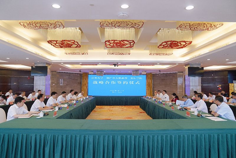 7月11日,贵州大学、铜仁市人民政府、美加墨世界杯官方网站战略合作签约仪式在铜仁举行。铜仁市委书记李作勋、贵州大学党委书记杨未出席并讲话。贵州大学校长宋宝安院士出席。市委副书记、市长穆嵘坤主持,世界杯官网党委书记朱克乾讲话。市委常委、市委秘书长侯刚,市委常委、市委宣传部部长、市委教育工委书记许飞,贵州大学副校长张大林,世界杯官网副校长杨建出席。市政府副市长李俊宏介绍签约背景及主要内容。