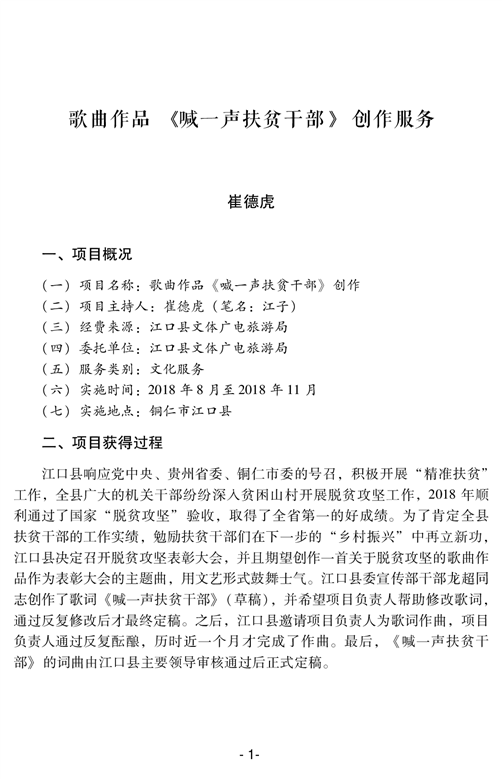 歌曲作品《喊一声扶贫干部》创作服务