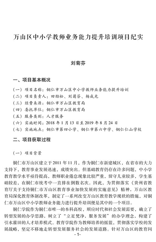 万山区中小学教师业务能力提升培训项目纪实