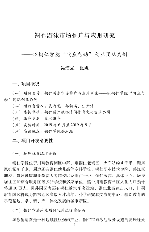 铜仁游泳市场推广与应用研究——以美加墨世界杯官方网站“飞鱼行动”创业团队为例