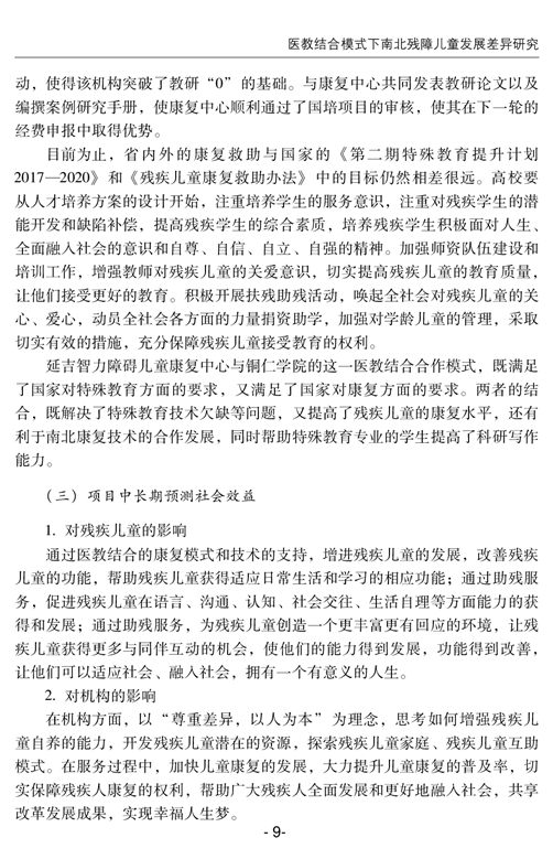 医教结合模式下南北残疾儿童发展差异研究