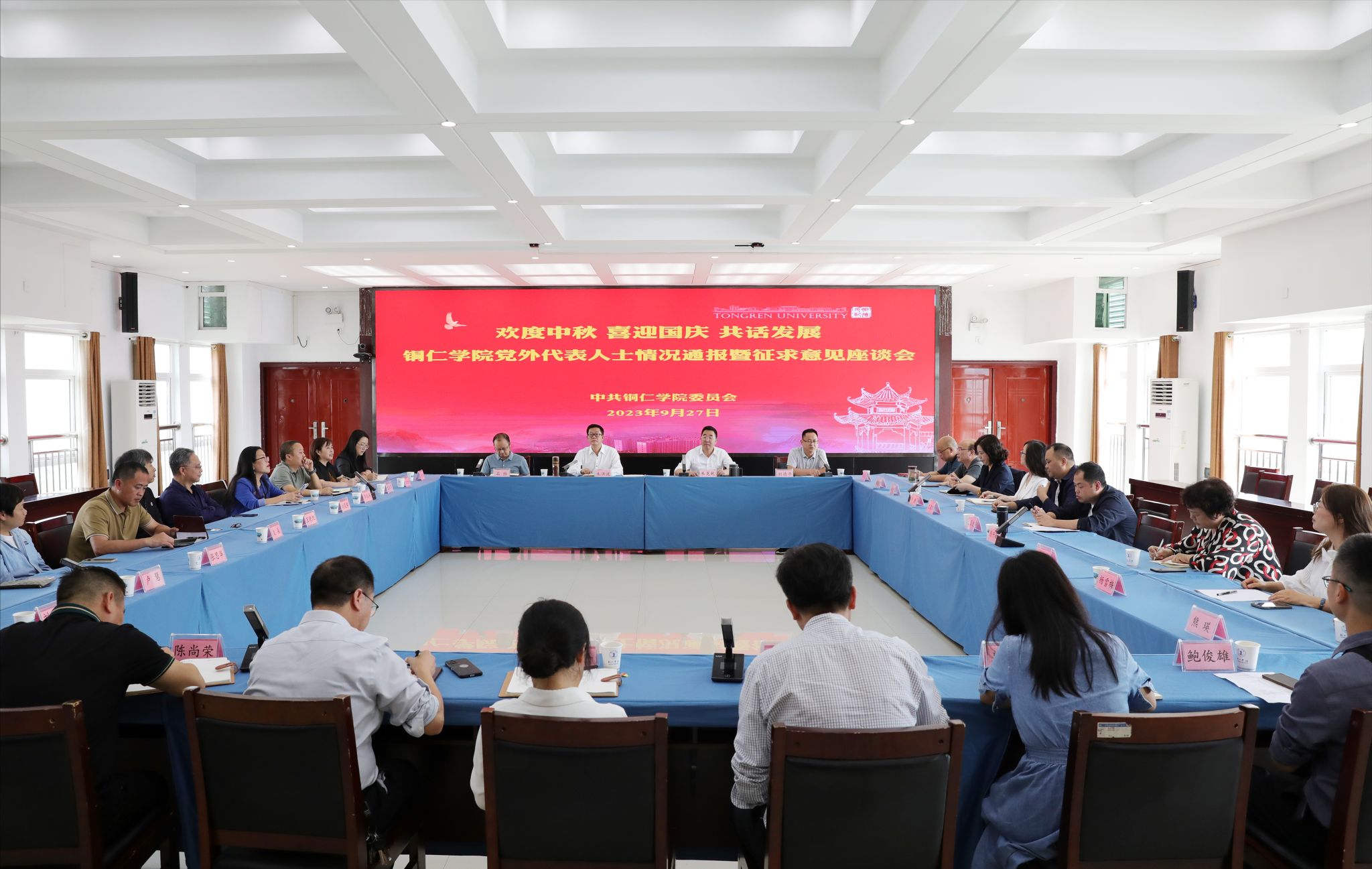 9月27日,世界杯官网在行政楼8501会议室召开党外代表人士情况通报暨征求意见座谈会。党委书记朱洪波、校长朱克乾、副校长石维出席会议。党委委员、统战部部长刘德平主持会议。相关部门负责人和学校党外代表人士齐聚一堂,欢度中秋,喜迎国庆,共话发展。