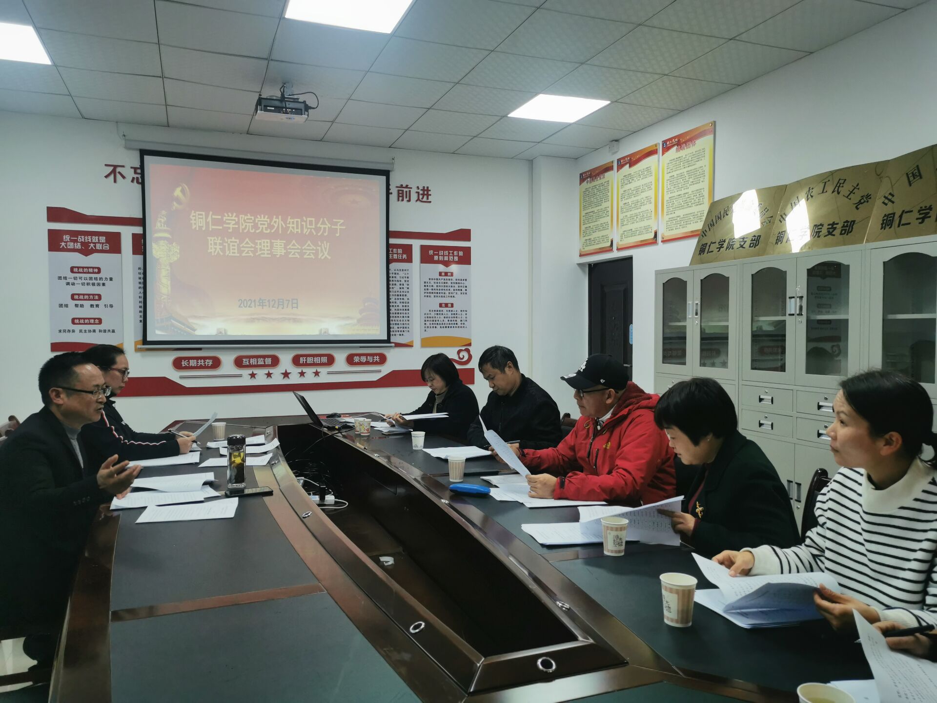 12月8日,世界杯官网召开党外知识分子联谊会第一届理事会理事会议,讨论研究“知联会”换届相关事宜。校党委委员、党委统战部部长刘德平出席会议,校党委统战部副部长罗玲玲和“知联会”第一届理事会全体理事参加会议。会议由校“知联会”第一届理事会副会长兼秘书长蒋小红主持。