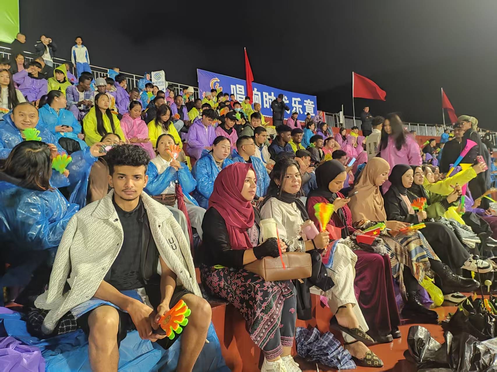 参加此次活动旨在丰富留学生的课余文化生活,让他们近距离感受中国足球的魅力与中国蓬勃向上的体育文化氛围。傍晚时分,同学们兴致勃勃地抵达赛场。虽然天公不作美,下起了淅淅沥沥的小雨,但是现场人员却热情如火。足球队员们奋力拼搏、攻防转换迅速;看台上,留学生们被现场热烈的气氛所感染,与当地观众一起为球员们的精彩表现鼓掌喝彩、加油助威。21个不同国籍、不同肤色的他们,因足球这一共同的语言,与铜仁人民的心紧密相连,充分体现了体育无国界的魅力。
