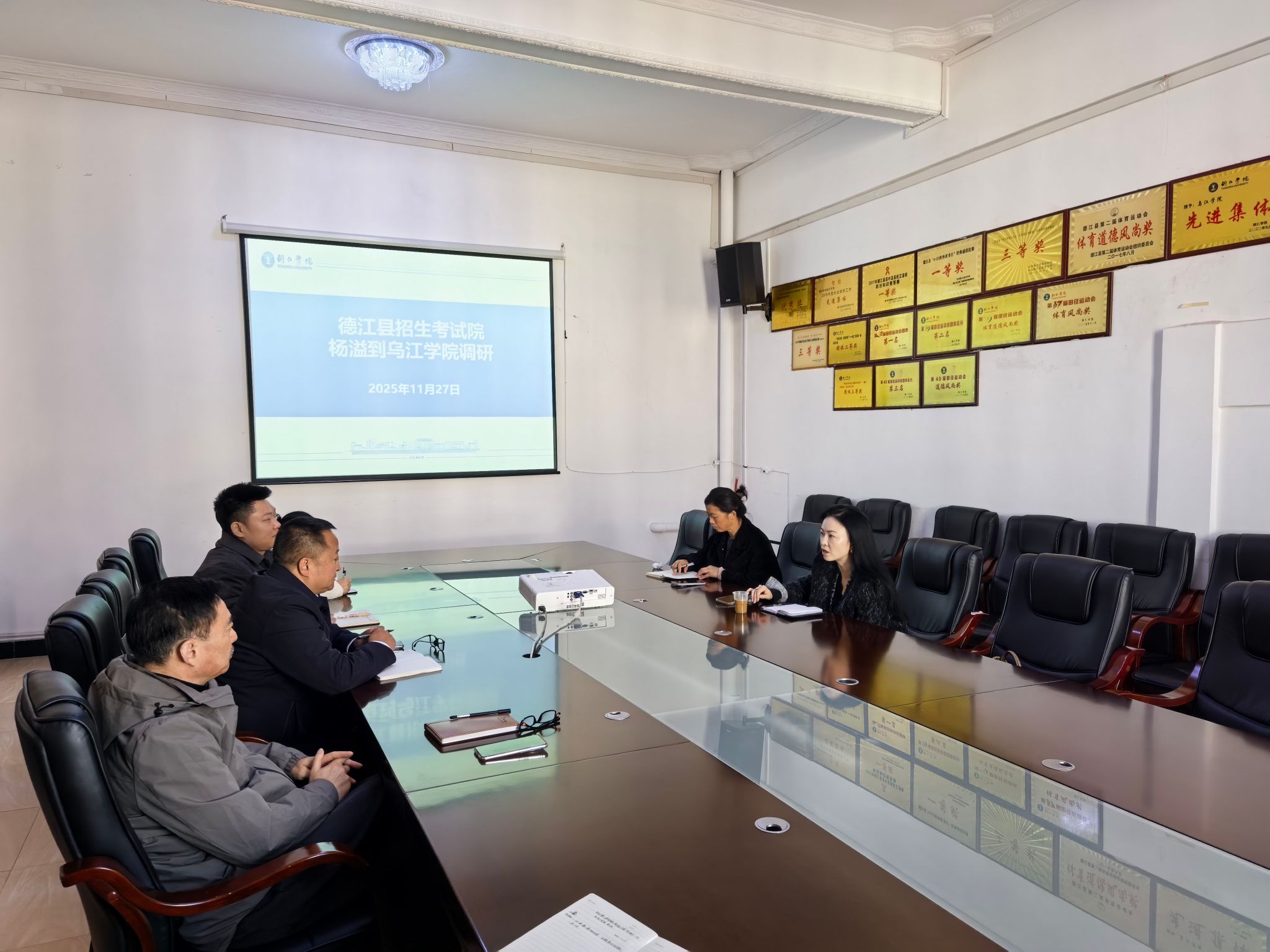 11月27日,德江县招生考试院杨溢院长一行到乌江学院,就德江县研学点规划与特色课程开发工作进行专题调研。乌江学院副院长李念(主持工作)、王红兵,全体教职工参加调研会议。