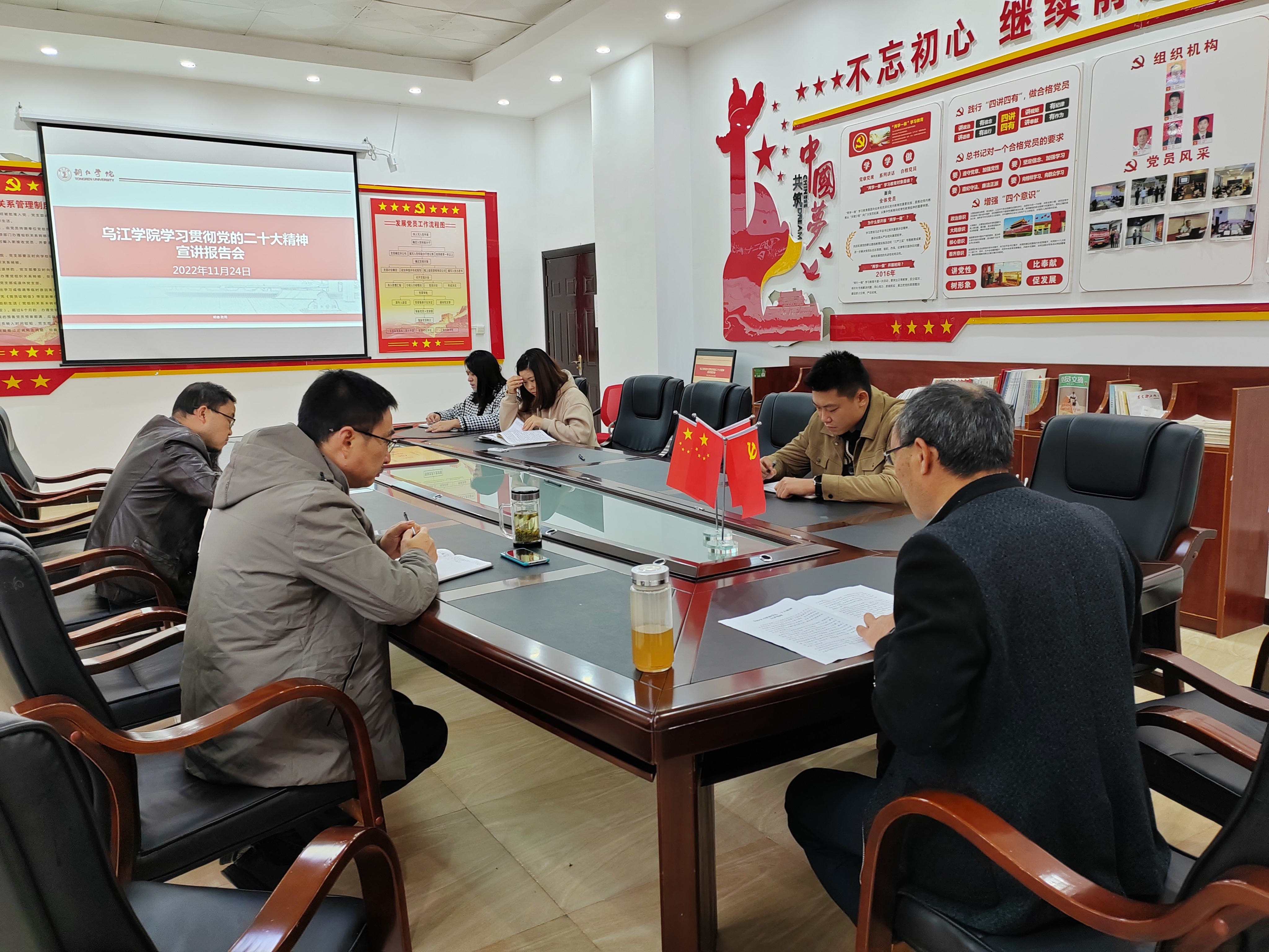 为深入学习贯彻党的二十大精神,11月24日,我院在党员活动室开展党的二十大精神宣讲会,宣讲会由党总支书记邓崇权主讲,全体教职工参加聆听。