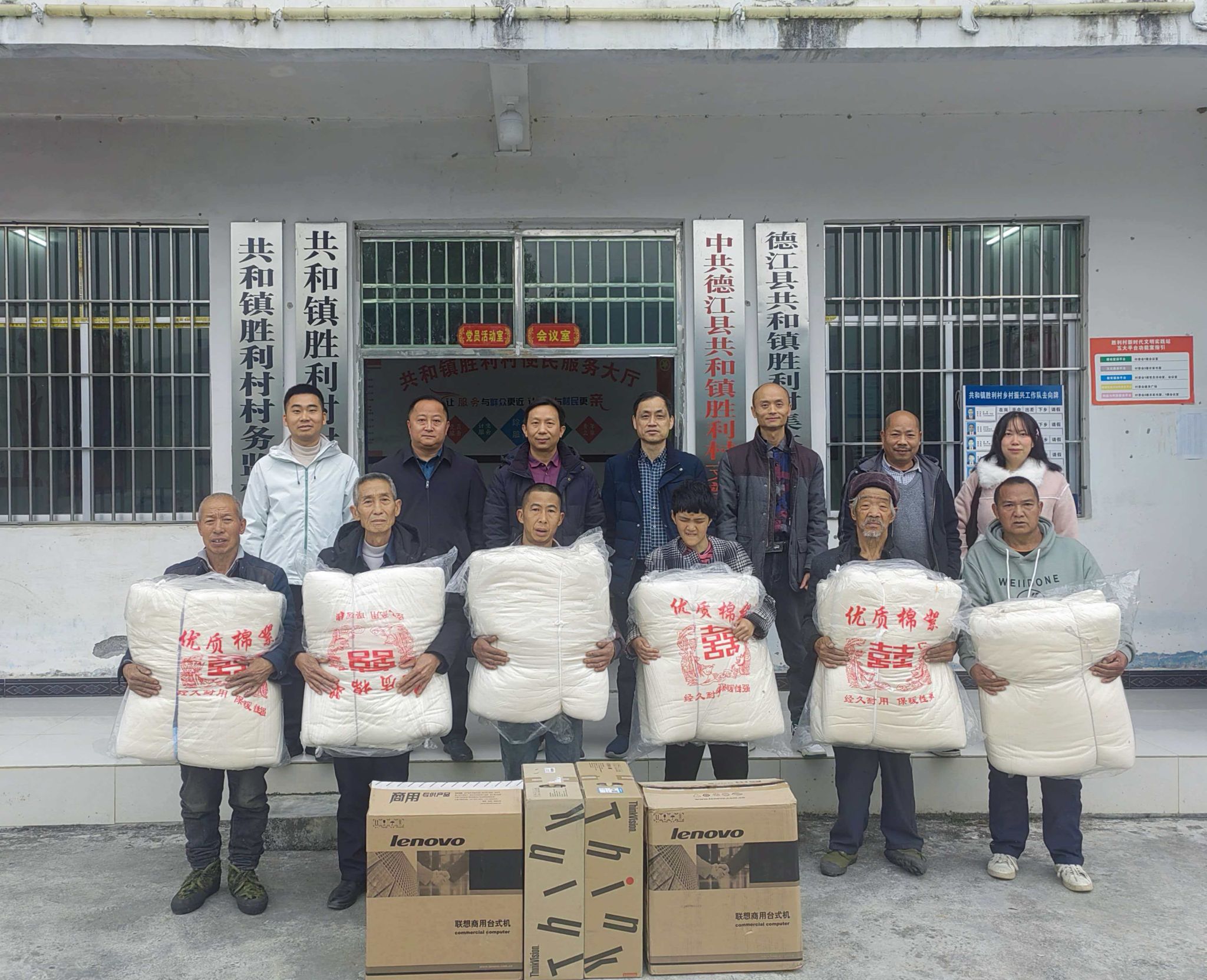 活动前,我院派驻胜利村驻村干部周源泉对该村困难党员、困难群众和留守儿童等情况进行了详细摸底。12月30日一早,院领导一行便带着慰问物资来到共和镇胜利村,在村委会会议室举行了乡村振兴工作调研暨慰问困难群众座谈会。座谈会上,该村驻村第一书记对近期重点工作作了介绍,驻村干部周源泉对本年度驻村工作作了汇报,村副主任邓守利对该村困难群众和重点关怀对象作了介绍,并对我院长期以来对在乡村振兴工作中开展的真情帮扶表示衷心感谢。院党总支书记张志会在座谈会上与群众们进行了深入交流,详细询问他们的身体情况和家庭生活情况。他在鼓励群众时说道:“困难只是一时的,大家要保持积极向上的心态,在政策帮扶和自身努力下不断改善生活条件,把日子越过越好”。随后,为困难群众发放了慰问物资。此次慰问共捐赠村委会办公电脑2套,发放过冬棉被8床。
