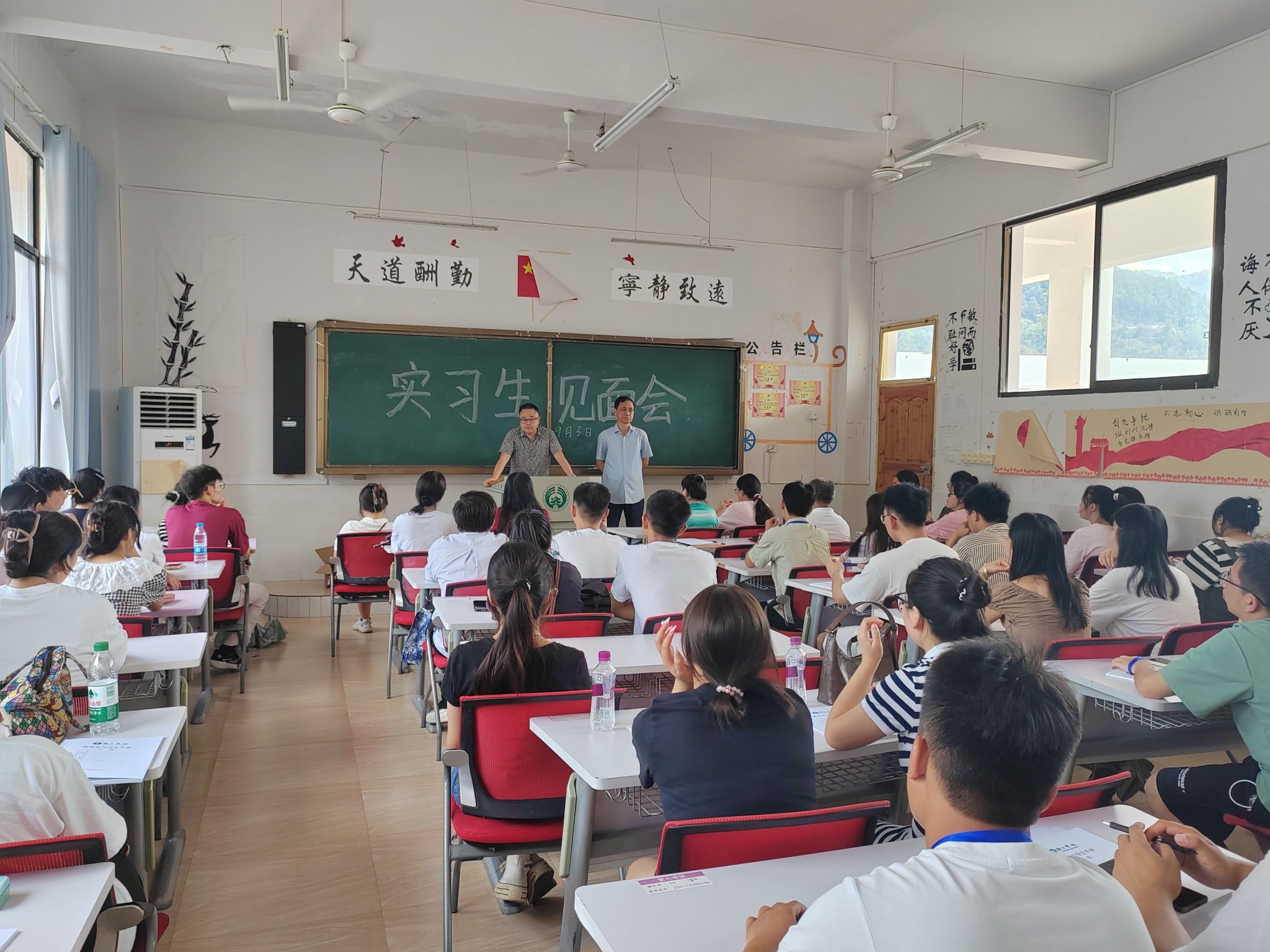 93日,在乌江学院402教室召开了实习生见面会,会议由指导组组长郑刚主持,参加会议的有各学科实习生53人,乌江学院全体教师。