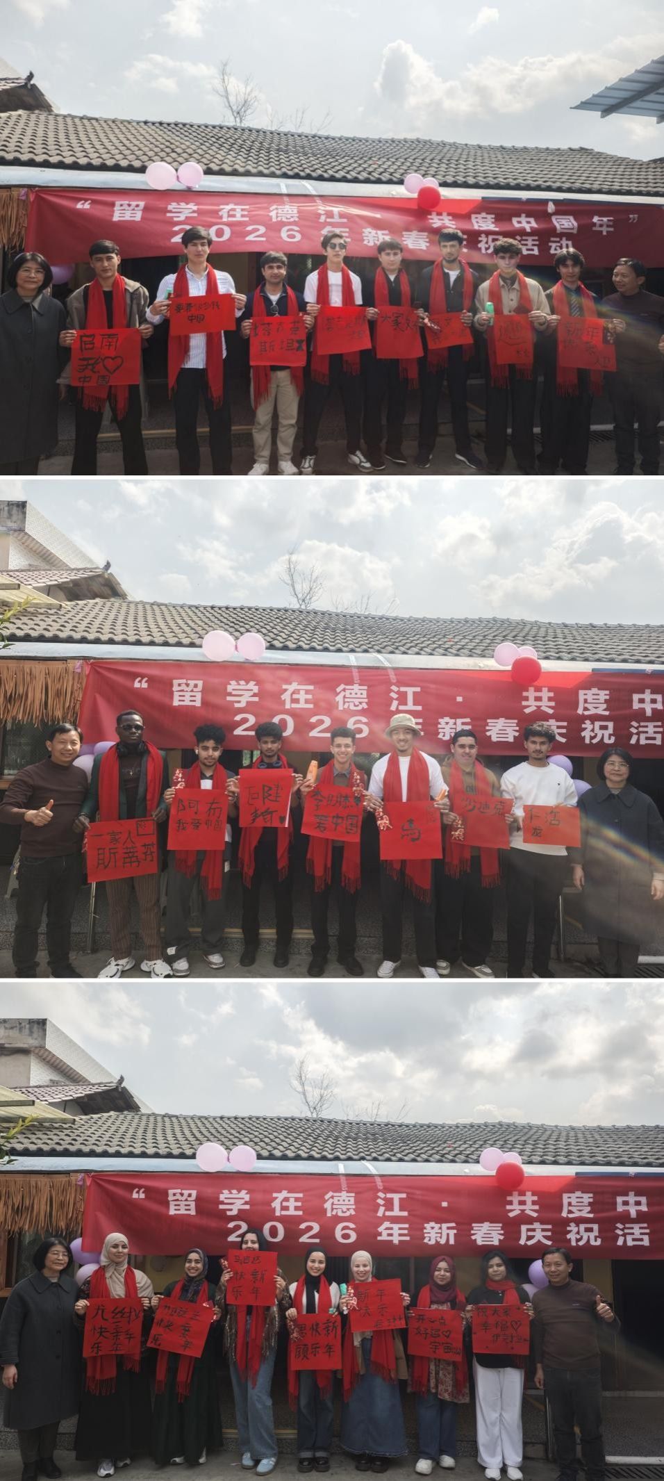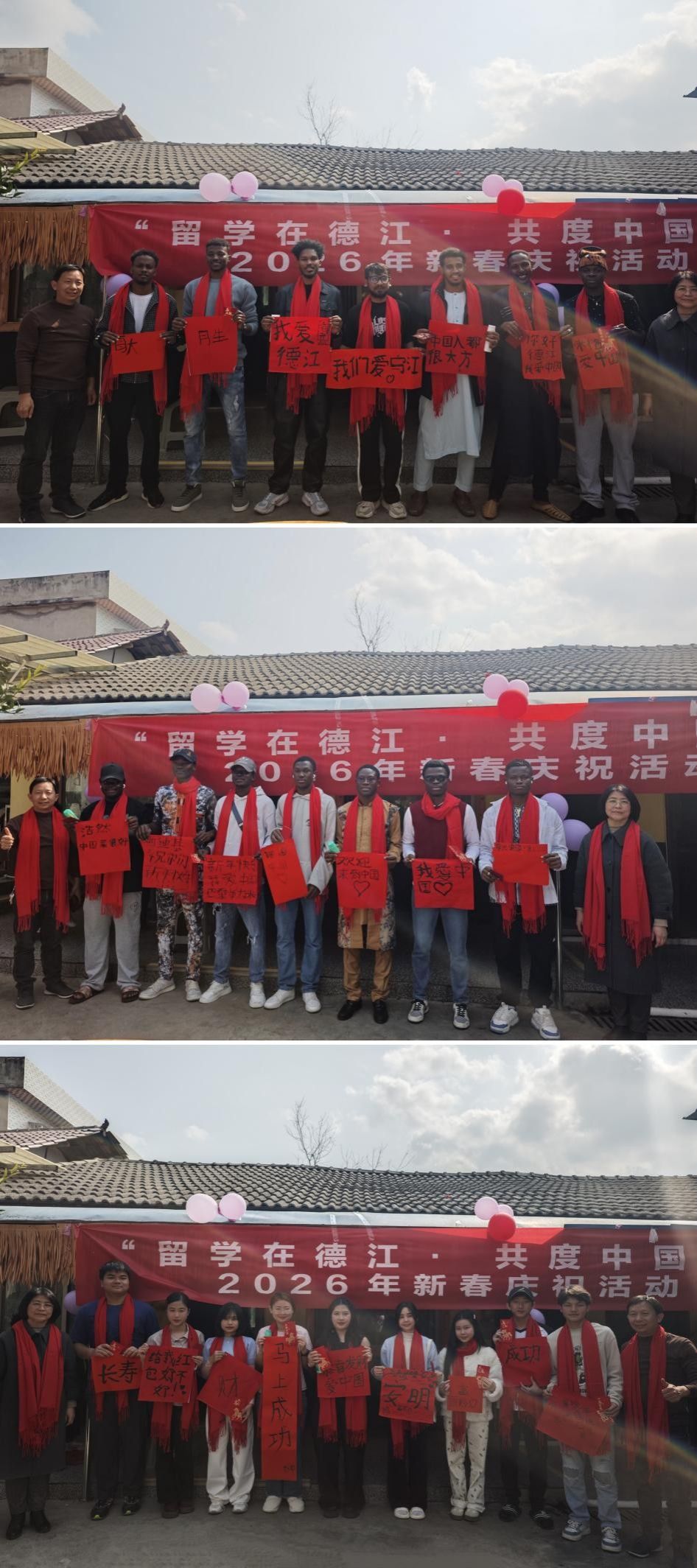 为迎接2026年春节,让留学生们沉浸式体验中国年俗、感受新春氛围,2月15日,世界杯官网乌江学院开展了“留学在德江·欢度中国年”新春庆祝活动。副校长龚静,乌江学院党总支书记张志会,副院长李念、郑刚以及70名国际留学生和特邀嘉宾齐聚一堂,共赴新春之约,共叙中外情谊。