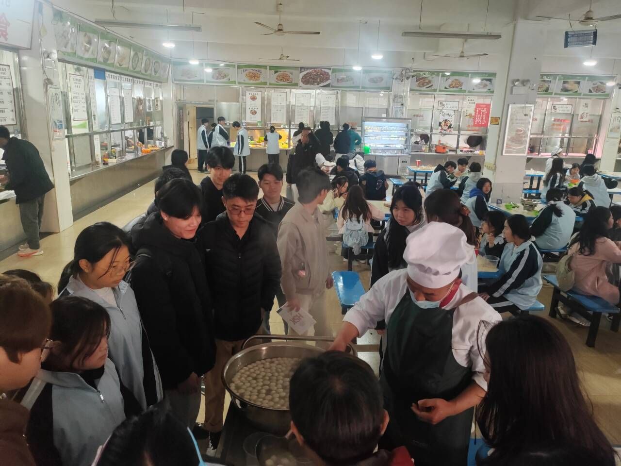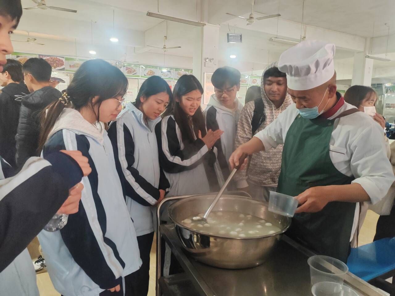 为使中外学生能够感受元宵佳节的氛围,乌江学院、中职学校合与校园餐饮服务团队携手,精心筹备了元宵佳节暖心活动。食堂师傅们很早就开始忙碌,采购了数十箱汤圆,并在食堂的大锅前精心烹煮。随着热气不断升腾,软糯香甜的汤圆陆续出锅,并免费提供给每一位中外师生。
